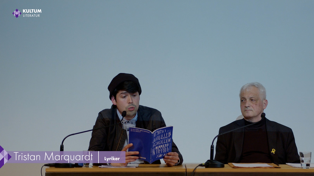 Àxel Sanjosé las aus seinem dritten Gedichtband „Das fünfte Nichts", Tristan Marquardt aus seinem tiefgründigen, mehrstimmigen Gedichtband „scrollen in tiefsee“...