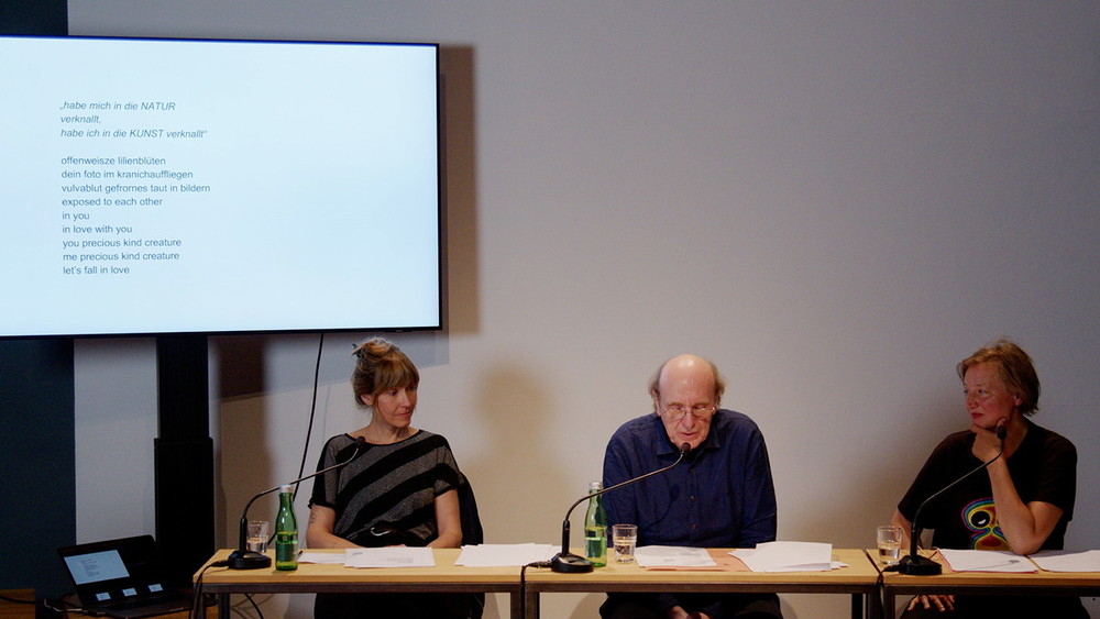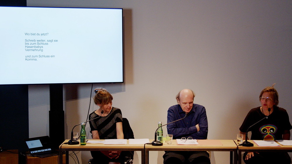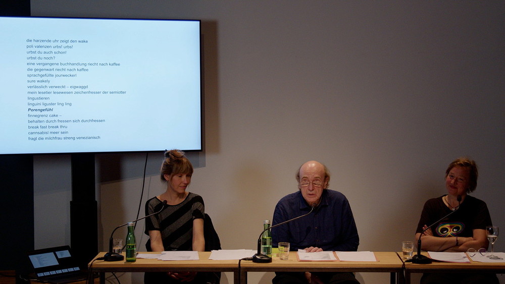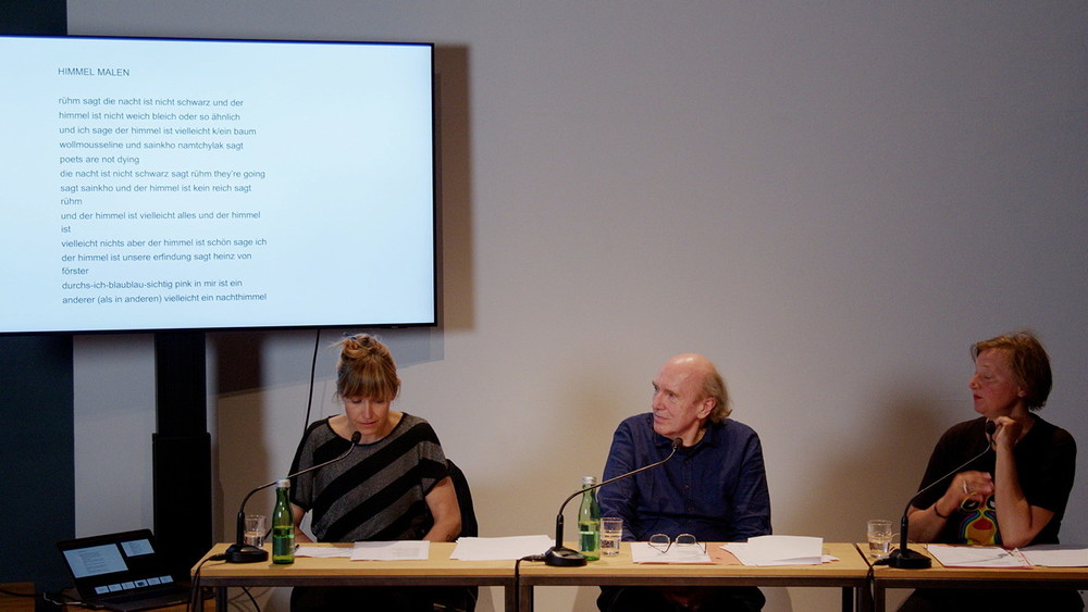 Vielleicht gelingt diesem Abend, an dem 1 Dichter und 2 Dichterinnen ihre Wörter nach/ reichen RICHTUNG FM den Knoten erneut zu verknoten, das Band erneut zu knüpfen … Letztendlich wünsche ich Ihnen (und ich lese, was Sie uns geschrieben hat): „HABEN SIE ERLEUCHTUNG, wohlmeinender Leser, erhabene Leserin, ich werde nie, sie auch nicht, alles von mir wissen mich niemals ganz kennen, daher nie wissen mit wem ich gelebt habe, geheimer als alle Geheimisse von denen ich weisz dasz ich sie mit in den Tod nehme…“