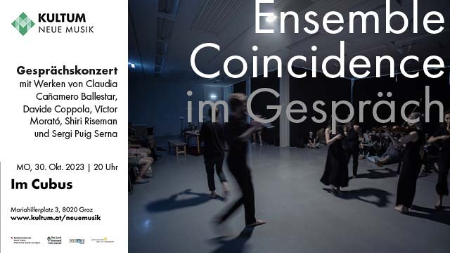 Fünf junge Komponist*innen – aus Graz oder mit starkem Bezug zu Stadt – stellen sich gemeinsam mit dem Ensemble Coincidence vor und suchen auf der Bühne das Gespräch miteinander – musikalisch und verbal -, um so noch tiefere Einblicke in ihre musikalischen Welten zu gewähren. Auch die jungen Musiker*innen eint ihre Verbindung zum Aufführungsort. So sind sie alle Absolvent*innen der Klasse des renommierten Klangforum Wien an der Grazer Kunstuniversität sind. Mit ihrem Projekt KlangRaum ließ das Ensemble 2022 erstmals aufhorchen. Seither gehören die Miteinbeziehung des Publikums und das Experimentieren mit Konzertformaten zum festen Repertoire der Gruppe.