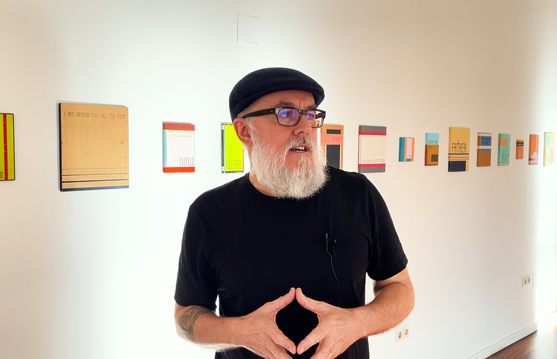 Heribert Friedl, eigentlich seit Jahrzehnten für seine „nonvisual-objects“ bekannt, malt in den letzten beiden Jahren in einer „Druckwelle“ von Inspiration Sprachverdichtungen von ungeheurer Einfachheit und Schönheit. Ursprünglich aus einem Moment existenzieller Trauer begonnen, werden die auf Englisch gehaltenen Poems (die oft nur aus einem Wort bestehen) zu berührenden „Nachrufen“ hinein in eine Welt, von der man nicht wissen kann, ob sie existiert, vielleicht kann man sie aber glauben: Es sind betörende Poeme, ja sprachliche Ikonen. Ist diese Welt eine vergangene? Ist sie eine zukünftige? Welche Funktionen haben die „Auswüchse“ in Form von Kreuzen in der alten Schrift? Ist es eine Erinnerung an Geschlechterdifferenzierung? Oder eine Auflösung?