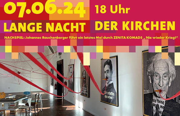 Nachspiel: Kurator Johannes Rauchenberger führt in der "Langen Nacht der Kirchen" ein letztes Mal durch die Ausstellung "NIE WIEDER KRIEG" von Zenita Komad.