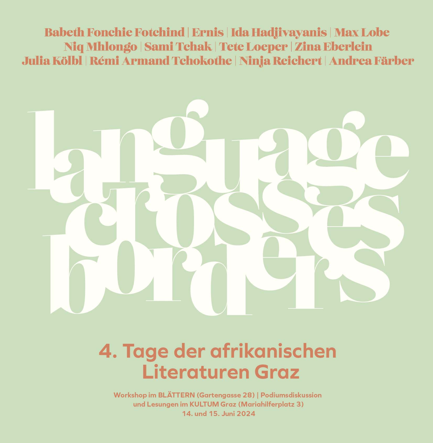 Am Freitagnachmittag werden die Tage der afrikanischen Literaturen von Kamdem Mou Poh à Hom, einem Vertreter der Stadt sowie von unserem Moderator Rémi Armand Tchokothe eröffnet. Anschließend wird es Lesungen von Babeth Fonchie Fotchind und Sami Tchak geben sowie geselliges Beisammensein bei einem Buffet, ehe der Tag mit Lesungen von Niq Mhlongo sowie Ida Hadjivayanis und Julia Kölbl (Moderation: Andrea Färber) abgeschlossen wird. Die Lesung der deutschsprachigen Texte erfolgt durch Ninja Reichert. Als Dolmetscherin fungiert Julia Kölbl.