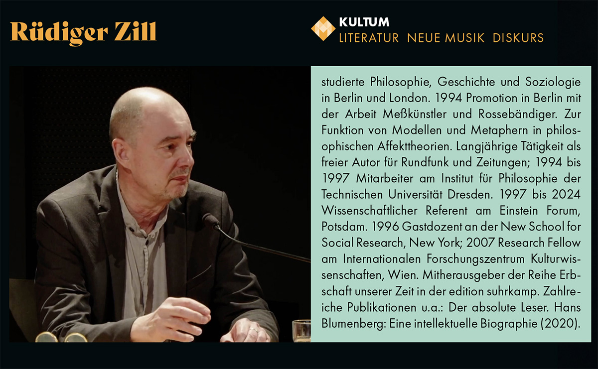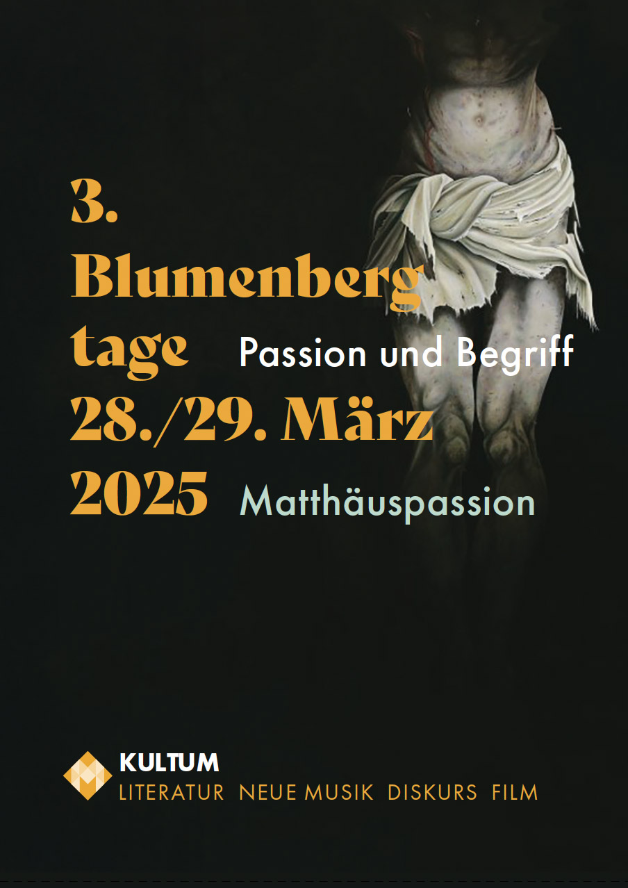 Im 50. Jahr des KULTUM stehen seine Bücher „Matthäuspassion“ (1988) und „Begriffe in Geschichten“ (1998) im Fokus. Blumenbergs Begriffsarbeit und seine Auseinandersetzung mit der Musik in Bachs großer Musik zur Passion Jesu werden ins Zentrum gestellt. Internationale Expert*innen und Kunstschaffende nähern sich Blumenberg an und erschließen sein Schaffen für die Gegenwart.