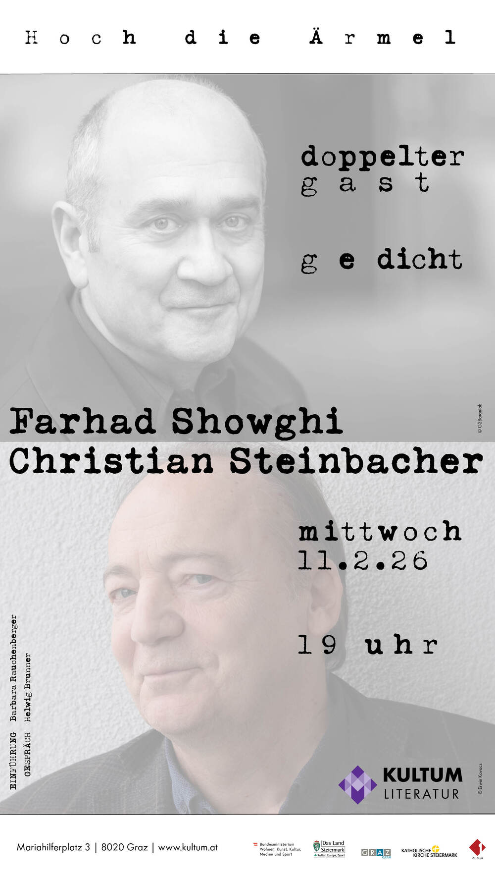 Er sei so etwas wie „ein Sprachtänzer und poetischer Unruhestifter, der keine Konvention gelten lässt“ (Michael Braun). Einer, der den universelleren Ursprung von Poesie im Blick behält und dennoch wie ein Munterer dichtet. Die Rede ist vom österreichischen Autor, Herausgeber und Verleger Christian Steinbacher, der seit Jahrzehnten aus dem reichhaltigen Fundus des Kenners – und Verstehers – der Klassiker schöpft und ein literarisches Werk geschaffen hat, das seinesgleichen sucht. Mit „Hoch die Ärmel“ (Czernin 2025) stellt er einen Gedichtband vor, der munter und neugierig macht, den angerufenen Ewigen wie Sappho oder Klopstock nachzuspüren.
