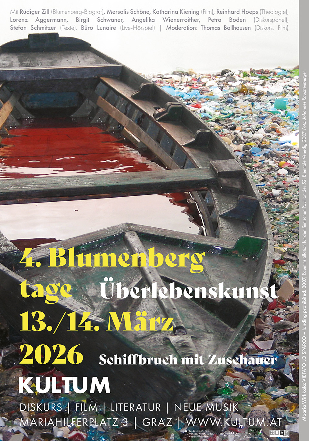 Was heißt es, in einer Zeit der Dauerkrise zu leben – und dennoch nicht zu verstummen? Mit „ÜBERLEBENSKUNST“ widmet sich das KULTUM in den „4. Blumenbergtagen“ am 13./14. März 2026 der Philosophie Hans Blumenbergs (1920–1996) und seinem Werk „Schiffbruch mit Zuschauer“. In einer Welt, die zwischen Klimakollaps, Krieg und digitaler Überforderung taumelt, wird Blumenbergs Metapher zum Spiegel unserer Gegenwart: Wir stehen am Rand des Geschehens, zwischen Ohnmacht und Einsicht, zwischen Untergang und Erkenntnis.
