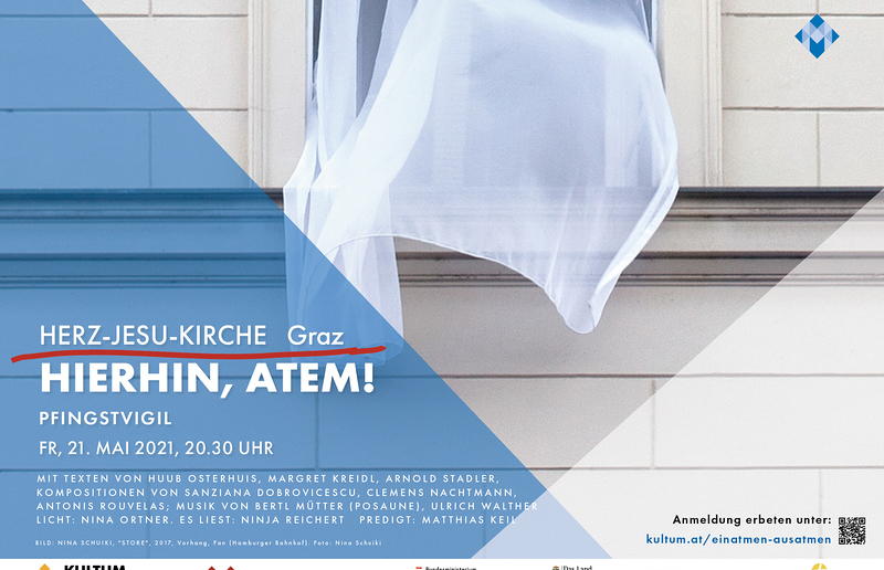 „HIERHIN, ATEM!“ ist die Aufforderung für die Pfingstvgil 2021 in der Grazer Herz-Jesu-Kirche. Es ist ein Aufruf. Es ist auch eine Anrufung – nach einem dramatischen Jahr der Angst, den Atem zu verlieren.