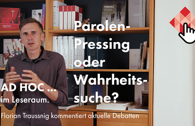 In diesem Kurzvideokommentar reagiert Diskurskurator Florian Traussnig mit einem persönlichen Videokommentar situativ und subjektiv auf Zeitaktuelles und gerade Erlesenes, fallweise werden auch Gäste eingeladen. 2022 hat er etwa den Ukraine-Krieg oder die Fußballweltmeisterschaft in Katar auf Youtube analysiert und kommentiert.
