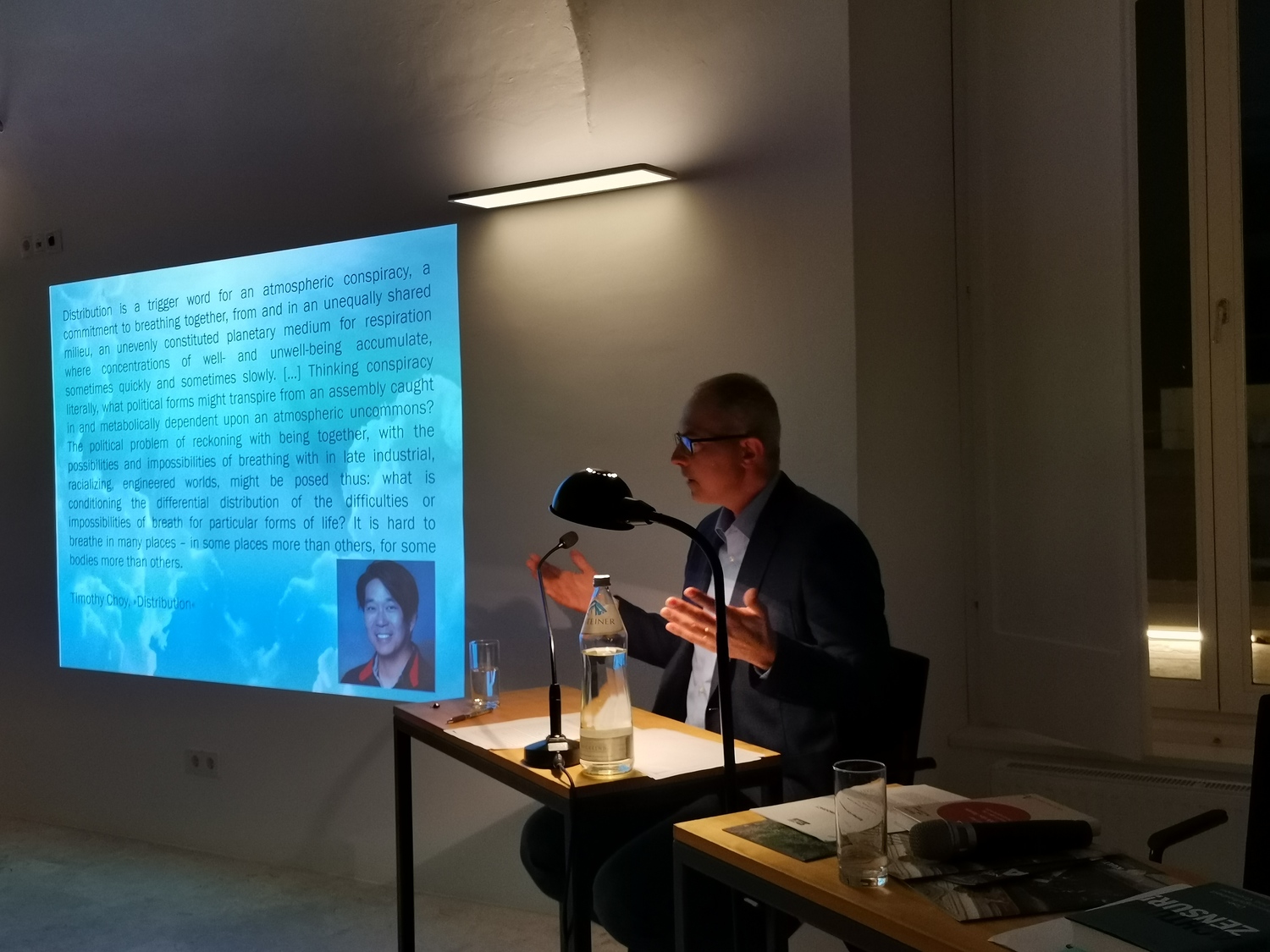 „If we protect and nurture our breath, but also the breaths of others, including those of nonhuman beings, in short the atmosphere, we defend the very materiality of life – i.e. life at its ontological core“ – wie dieser Auszug aus dem Impuls von Lenart Škof zu Beginn des ATEM-Diskurspanels zeigt, war der englischsprachige Beitrag Respiratory Democracy / Atmende Demokratie des slowenischen Philosophen Lenart Škof mehr eine intensive Meditation über eine neue politische Ethik als ein klassischer Wissenschaftsvortrag: Unserer politisch respektive ökologisch von „flames of violence and bad air“ gekennzeichneten Gegenwart hält er einen Ansatz entgegen, der ausgehend vom Grundsatz „Democracy Begins Between Two“ (Luce Irigaray) eine „radikale Neugestaltung und Erweckung“ zum Ziel hat. Dazu brauche es eine „respiratory alliance“ und einen Fokus auf „relational belonging, ethical affectivity, our belonging to nature, and life“, der nur über eine Wiederentdeckung des von der westlichen Philosophie laut Škof weitgehend vergessenen – und nun von Stimmen wie Luce Irigaray und Bruno Latour quasi wiederentdeckten – Atems möglich sei. Wir alle seien Teil von atmosphärischen Beziehungen, Teil eines atmenden Netzes, so der Philosoph. Dem „ungleich verteilten planetarischen Medium für den Atem“ (Timothy Choy) müsse mit respiratory solidarity begegnet werden. Eine Solidarität, die sich natürlich auch politisch manifestiert, wie man bei den Protesten zum atempolitisch schreiend ungerechten Erstickungstod des Afroamerikaners George Floyd („I can’t breathe“) oder im afrikanischen Liberia sieht, wo es vor allem Frauen waren, die mit „breath, prayer, care for life, and silence“ auf sanfte, aber radikale Weise den Friedens- und Versöhnungsprozesse beinflussten. Zum Atem gesellt sich das Feuer, das seit der industriellen Revolution seiner mythologisch-nährenden Kraft beraubt und im vergangenen „century of violence“ unheilvoll militarisiert worden sei, so Škof. Dennoch, so der Leiter des Instituts für Philosophische Studien am Wissenschaftlichen Forschungszentrum Koper, brauche es neben einer neuen Ethik des Atems auch das Feuer, um die Menschheit im positiven Sinne anzuheizen, sich auf eine neue „Konspiration“ der Kreativität und Zugehörigkeit zuzubewegen. Letztlich gebe es in allen Mythologien und Religionen eine spirituelle Anleitung, seinen Atem im Sinne einer nicht egoistischen self-affection zu entdecken und intensiv wahrzunehmen und dadurch einen ebenso produktiven wie empathischen Link zwischen dem eigenen Mikrokosmos und dem Makrokosmos der restlichen Welt, also auch den mitatmenden Geschöpfen, zu schaffen. Eine atmende Demokratie, so der das Publikum in seinen Bann ziehende Škof in Anlehnung an Peter Sloterdijk, ist kommunitär ausgerichtet, leise, aber gleichzeitig stark, spricht „resolut für die Unterdrückten“: „[O]ur quiet democracy nourishes what Sloterdijk would call the breathed commune. Respiratory democracy is the community of breathers.“