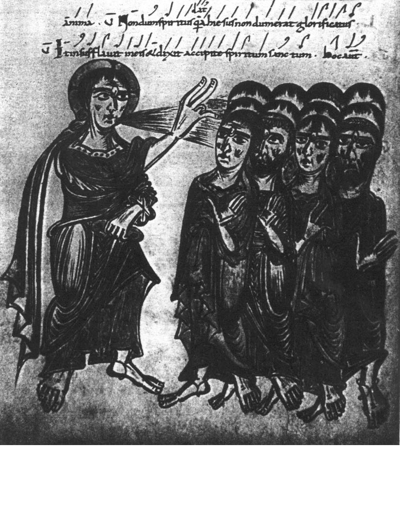 Christus spendet den Jüngern den Geist, Buchmalerei aus Nouantuola, 1039