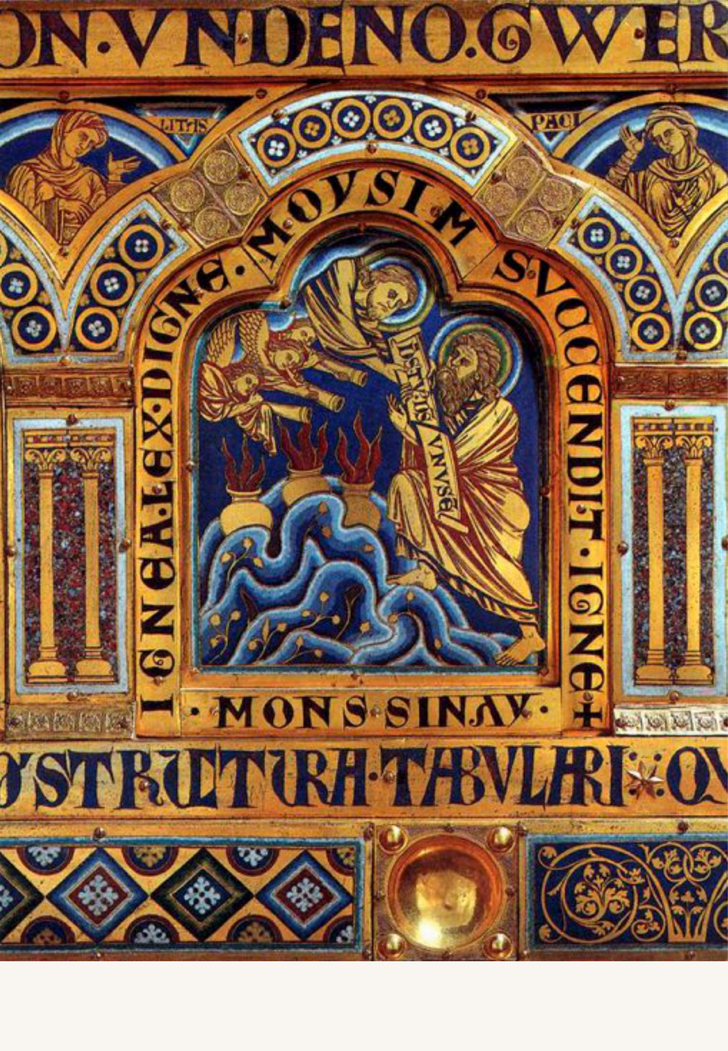 NICOLAS von VERDUN Moses am Berg Sinai, 1181 Getriebenes Kupfer, Email, G14 x 10 cm Augustiner Chorherrenstift, Klosterneuburg