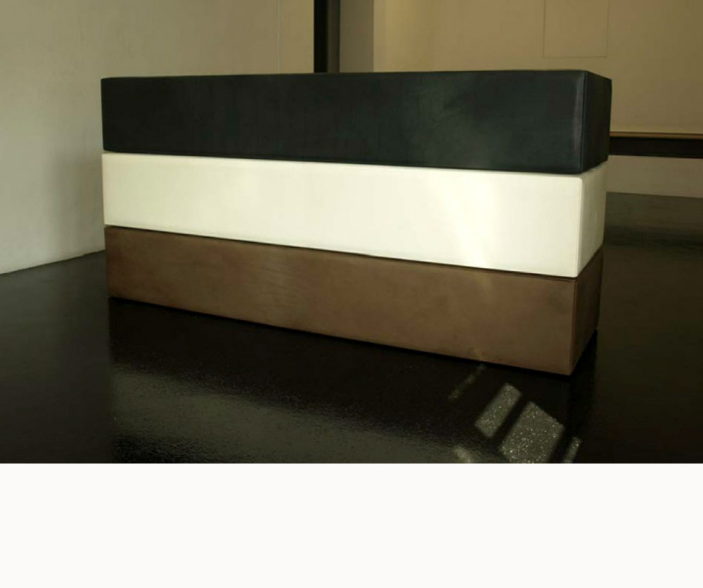 Anneliese Schrenk, "Körper Nr1:3:4", 2011, Leder auf Holzkonstruktion, 3-teilig, je 182x56x28 cm, KULTUMdepot Graz, aus: 1+1+1=1. Trinität (2011)