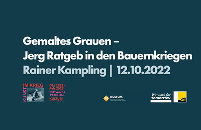 Auch im Krieg wird Kunst geschaffen, um die Brutalität des Krieges schonungslos zur Darstellung zu bringen oder in der Gesellschaft ein wirkungsvolles Statement zum Widerstand gegen den Krieg zu setzen. Kunst kann aber auch zu Propagandazwecken instrumentalisiert werden oder kriegerischen Siegen ein glorifizierendes Denkmal geben. Die Veranstaltungsreihe thematisiert mit Vorträgen und einem Film exemplarisch diese unterschiedlichen Motive künstlerischen Schaffens in Kriegszeiten und wirft einen Blick auf die Auseinandersetzung von Künstlerinnen und Künstlern mit Krieg und dessen Gewalt, aber auch dessen existenziellen Energien. Beleuchtet wird der Zeitraum zwischen der Frühen Neuzeit mit den Bauernkriegen, deren Gräuel sich auf den Altarbildern von Jerg Ratgeb widerspiegelt, und dem aktuellen Krieg in der Ukraine mit einer Filmproduktion aus dem Donbas und dem aktuellen Werk der ukrainischen Künstlerin Kateryna Lysovenko.