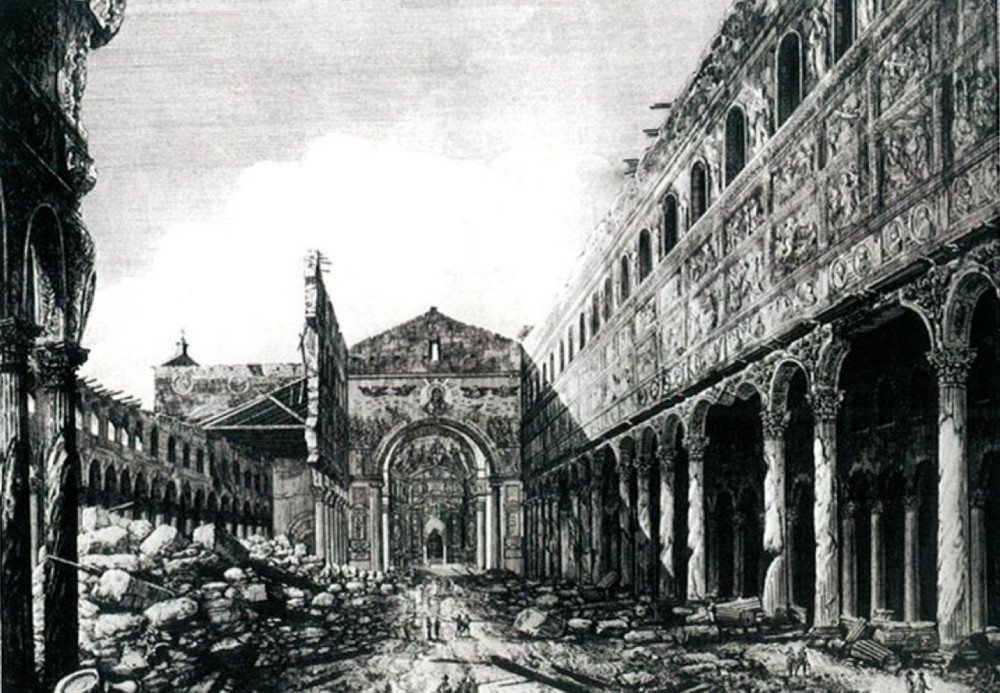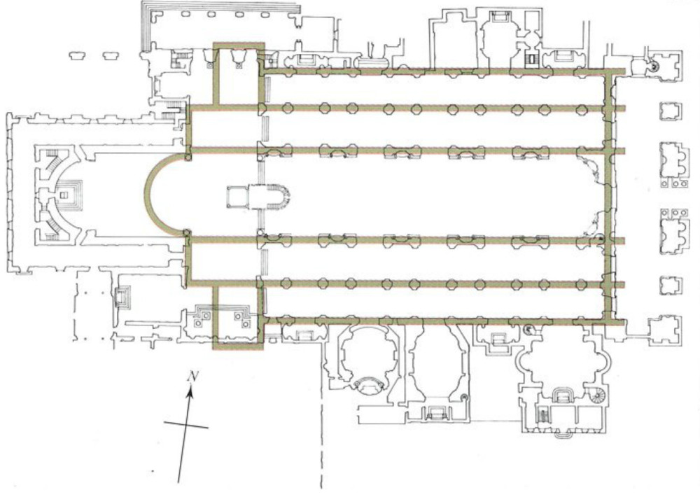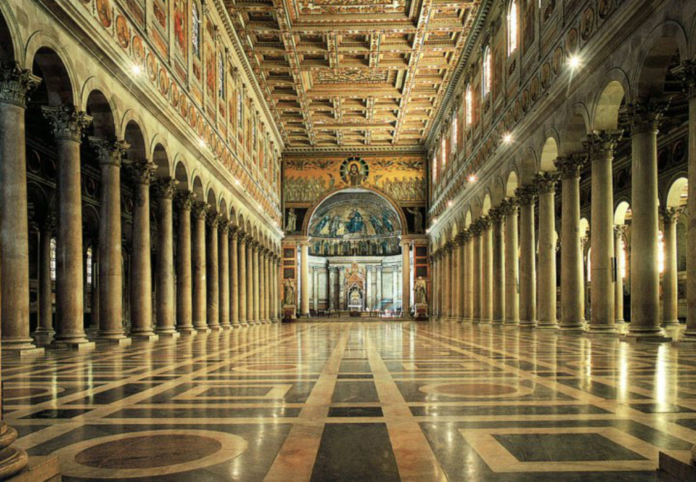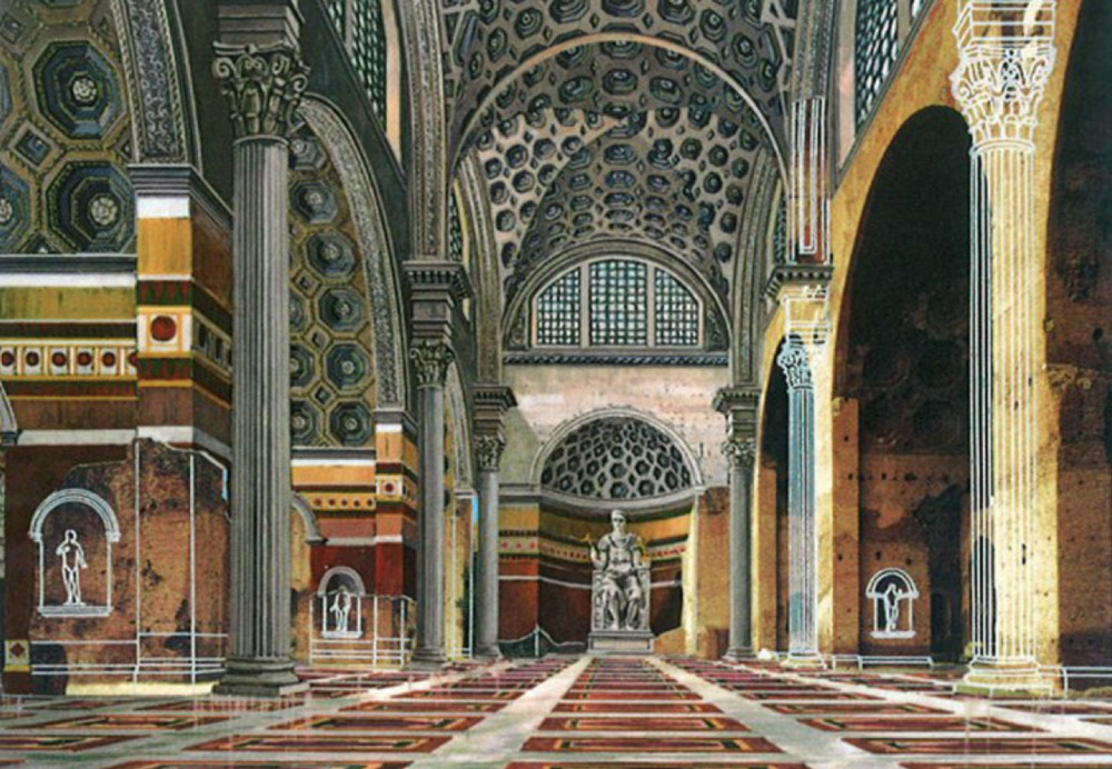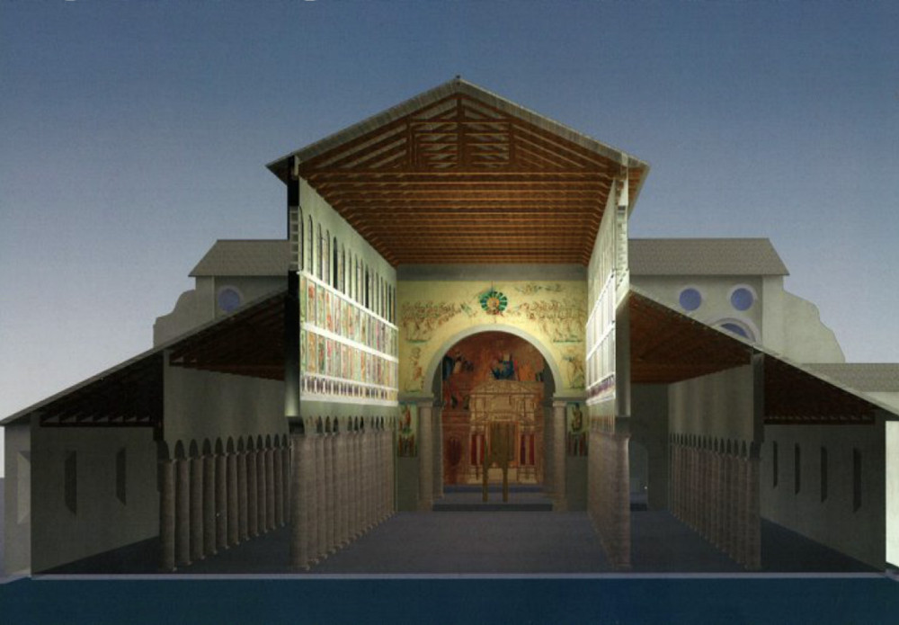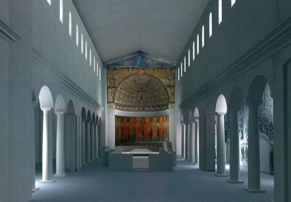 San Paolo fuori le mura. 3D-Rekonstruktion des Querschnitts vor dem Brand im Jahr 1823.