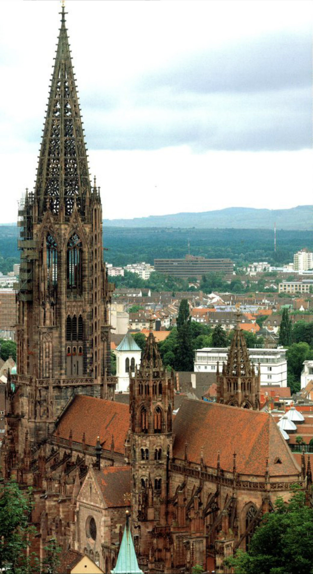 Freiburg, Münster Unserer Lieben Frau, beg. um 1200. Außenansicht des Münsters von Südost.