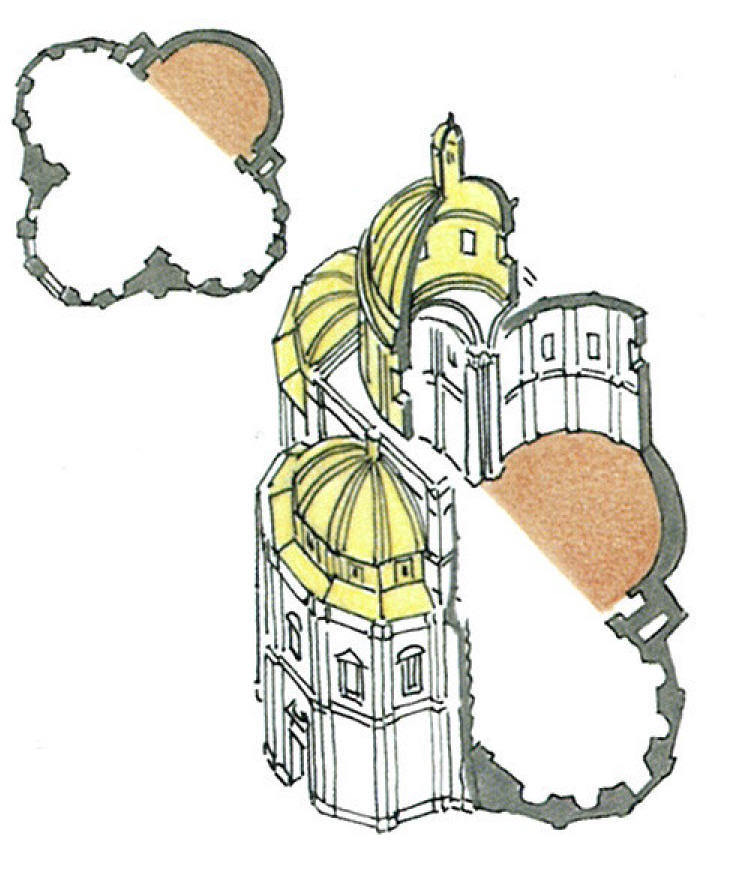 In der Kuppelarchitektur bündelt sich der Gestaltungswille der Sakralarchitektur im Zeitalter der Renaissance. Bleibender Bezugspunkt bleibt das antike Pantheon, bei dem die ideale Kreisform Grund- und Aufriss bestimmen. In der Florentiner Domkuppel Filippo Brunelleschis wird die Kuppel auch städtebaulich prägend, eine Entwicklungslinie, die Michelangelo in seiner Kuppel für den Petersdom in Rom zur Meisterschaft führt.