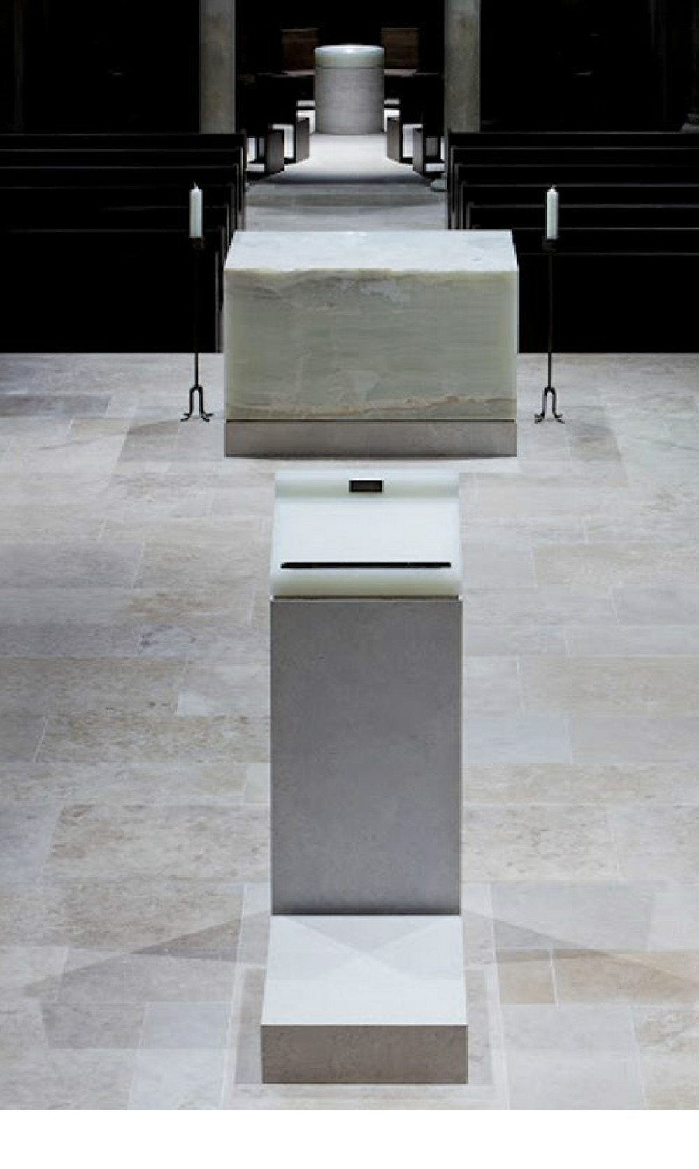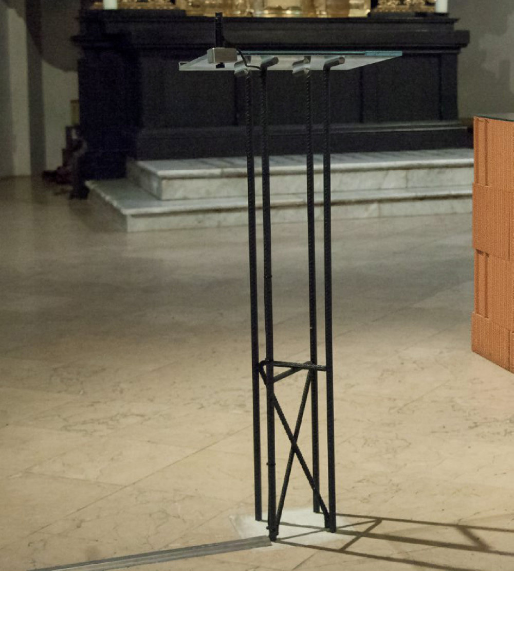 Heidrun Primas: Ambo, 2011, Stahl, Glas, Neon, Pfarrkirche Hl. Radegundis, St. Radegund