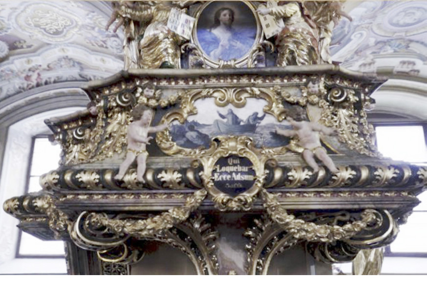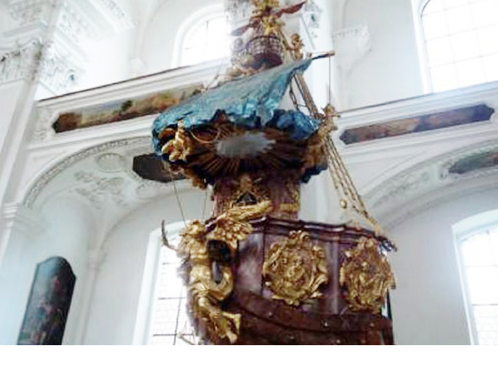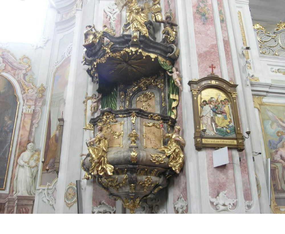 "Schiffskanzel" von Ignaz Hillenbrand, Anfang 18. Jh., Kloster Irsee (Schwaben). Foto: J. Rauchenberger