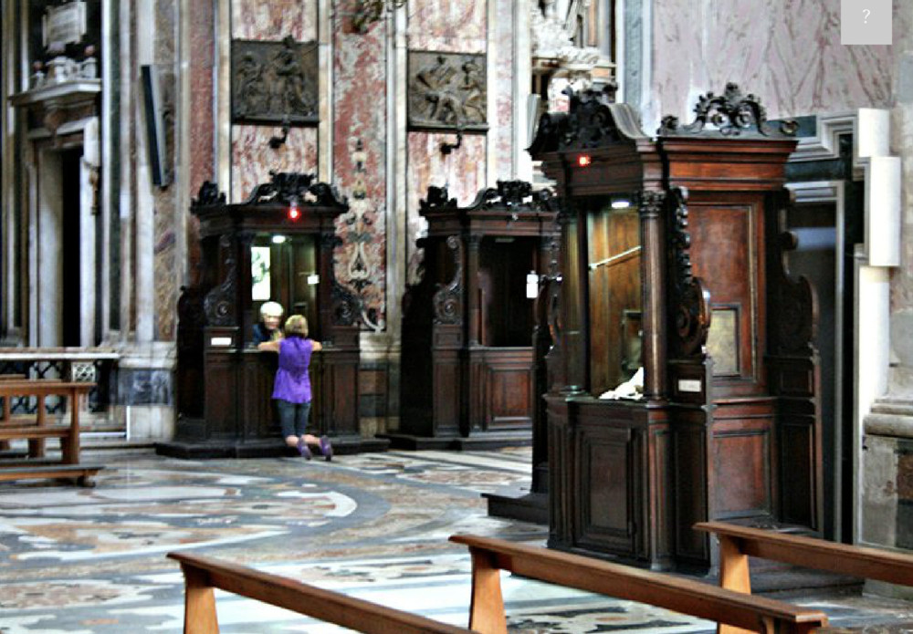 Erzählen Sie die Biografie des Beichtstuhls im katholischen Kirchenraum!