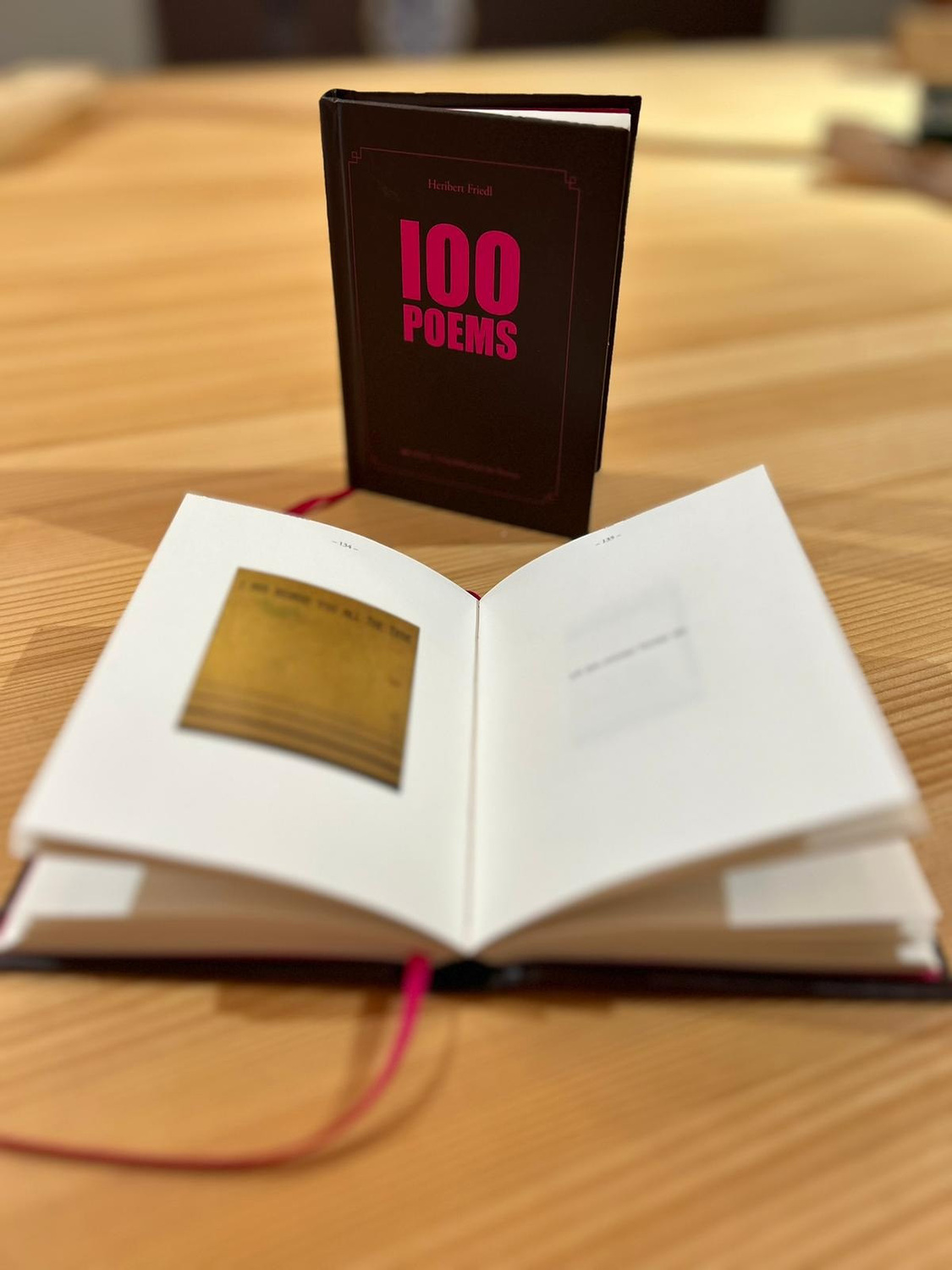 100 POEMS: Heribert Friedl, eigentlich seit Jahrzehnten für seine „nonvisualobjects“ bekannt, malt hier in einer „Druckwelle“ von Inspiration Sprachverdichtungen von ungeheurer Einfachheit und Schönheit. Ursprünglich aus einem Moment existenzieller Trauer begonnen, werden die auf Englisch gehaltenen Poems (die oft nur aus einem Wort bestehen) zu berührenden „Nachrufen“ hinein in eine Welt, von der man nicht wissen kann, ob sie existiert, vielleicht kann man sie aber glauben: Es sind betörende Poeme, ja sprachliche Ikonen von Sehnsucht und Trost.