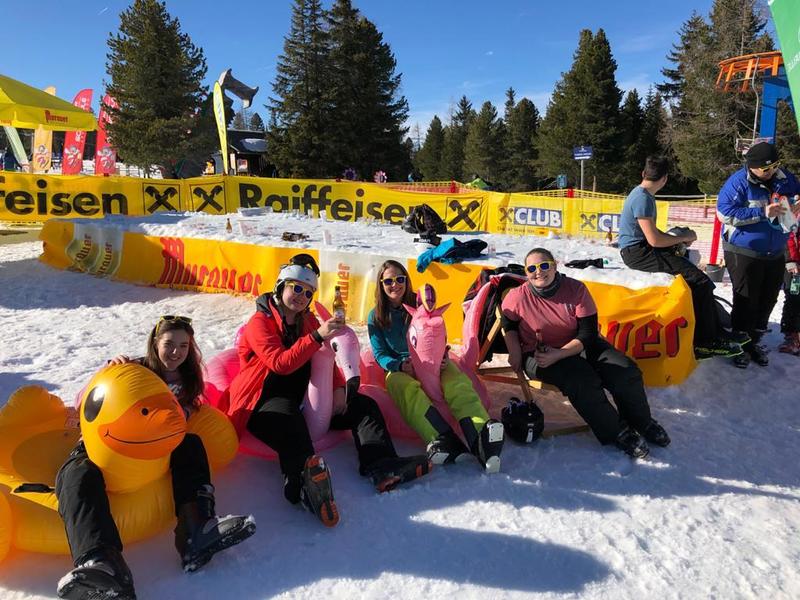 Nach der Ankunft ging es zu aller erst zur Abholung der Liftkarten. Die Pisten waren gut präpariert und wir waren gut in mehreren Schichten angezogen. Und so stand einem tollen Skitag nichts mehr im Wege. Nach einigen Schwüngen durch den Schnee, gab's zu Mittag dann ein Gulasch und zum Teil ein Bier dazu. Danach ging's dann auch wieder auf die Piste und manche nutzten auch die Chance, den Einkehrschwung aufzufrischen. Nach einem anstrengenden Tag fuhren wir dann pünktlich um 18:30 Uhr wieder nach Gnas, wo uns schon das warme Bett oder noch das letzte "Zamsitzn" erwartete...