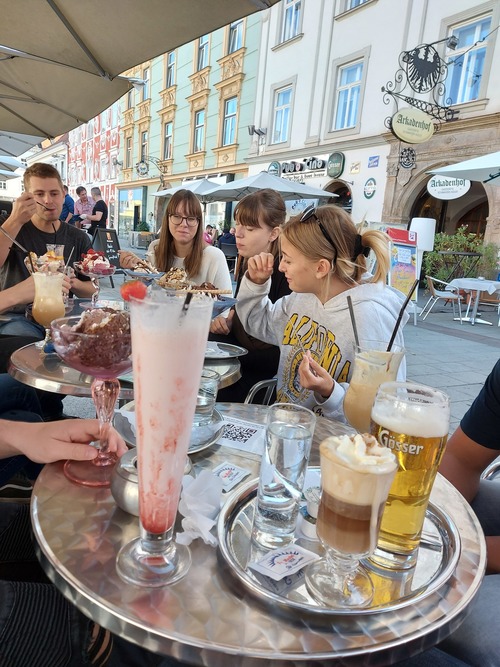 Die diesjährige Reise führte uns in die Obersteiermark, nach Eisenerz. Am Weg dorthin machten wir bereits einen Zwischenstopp in Spielberg, wo wir gleich einmal die Go-Kart-Bahn ausprobierten. Danach ging es weiter nach Eisenerz, wo wir unser eigenes Selbstversorgerhaus bezogen. Leider hatten wir etwas Pech mit dem Wetter und gestalteten unser Programm immer sehr spontan. Aufgrund des Wetters waren wir somit eher auf "Indoor-Aktivitäten" angewiesen. Wir besuchten direkt in Eisenerz ein Gesteinsmuseum, sowie das Ortsmuseum, den Erzberg (inklusive Hauly-Fahrt), das Hallenbad und einen schönen Nachmittag verbrachten wir auch am Leopoldsteinersee. An einem Tag waren wir in der zweitgrößten Stadt der Steiermark - in Leoben. Wir besuchten die Gösser Brauerei und flanierten durch die Innenstadt. Am Ende unserer Reise machten wir auch noch einen kleinen Abstecher in das Stift Admont.