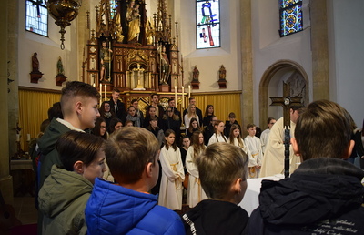 Beim 9:30 Uhr Sonntagsgottesdienst am 24. November haben sich in der Gnaser Pfarrkirche die Firmlinge vorgestellt, die sich in diesen Monaten auf das Sakrament der Firmung vorbereiten. Diese Jugendmesse, die unter dem Motto "Spuren im Sand" stand, wurde von uns musikalisch umrahmt und mitgestaltet. Wie immer durften dabei englischsprachige, moderne Lieder nicht fehlen!