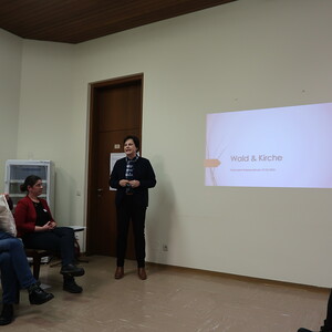 Martina Laubreiter präsentierte die Ergebnisse einer von ihr durchgeführten Befragung zum Thema „Wald und Kirche“. Darin zeigte sich die Verbundenheit der befragten Menschen mit dem Wald und auch der Wunsch, dass die kirchlichen Wälder ökologisch und nachhaltig bewirtschaftet und genutzt werden sollen.
