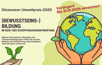 im Geist der SchöpfungsverantwortungMachen Sie mit beim Diözesanen Umweltpreis 2025 der Diözese Graz-Seckau!