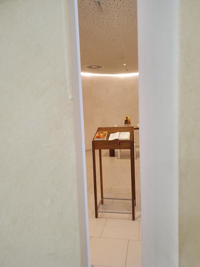 Bei diesem Treffen erfuhren wir auch Näheres über den Raum der Stille am Wiener Hauptbahnhof. Dieser Raum ist ein überkonfessionelles Angebot für Menschen, die in der Betriebsamkeit des Hauptbahnhofes zur Ruhe kommen (möchten).