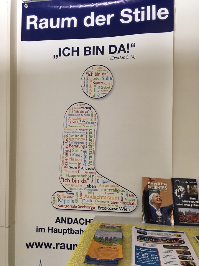 Vor der Heimfahrt konnten wir uns für einige Minuten im Raum der Stille von der Atmosphäre und der Wirkung dieses Raumes überzeugen. Falls Sie in Wien am Hauptbahnhof sind, gönnen Sie sich Zeit zum Innehalten, zur Andacht, zum Gebet ...