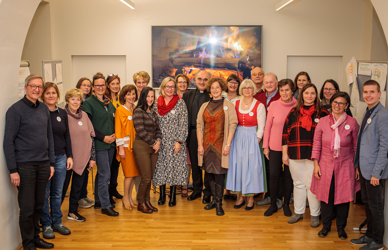 19 Teilnehmende aus allen Regionen der Diözese konnten in vier Modulen in die Welt der Rituale eintauchen, bekamen Werkzeug, entwickelten Fähigkeiten, Rituale selbst zu entwickeln und führten selbst ein Ritual im eigenen Wirkungskreis durch. Konzipiert, begleitet und durchgeführt wurde der Lehrgang in Kooperation von Bruno Almer, Fachbereich Pastoral & Theologie und Katrin Windischbacher, Familienreferat. Referent:innen im Kurs waren die Ritualgestalterin und Leiterin der Akademie für Ritualgestaltung Österreich, Johanna Neußl aus Vorarlberg sowie Liturgiereferent Bruno Almer. Beim abschließenden Modul des Lehrgangs wurde zu einem „Kamingespräch“ mit Bischof Wilhelm Krautwaschl, Johanna Neußl, Tamara Strohmayer sowie Elisabeth Aumüller geladen. In mehreren Fragerunden wurden mit den Lehrgangsteilnehmer:innen Themen rund um die Ritualgestaltung in unserer Diözese diskutiert. Die Ritualbegleiter:innen wurden ermutigt, diese neue Form des Feierns in unserer Diözese anzubieten und hier vom Leben der Menschen auszugehen. Der nächste Lehrgang „Einführung in die Kunst der Ritualgestaltung“ startet im März 2023, eine Website zu „Rituale leben.glauben.feiern“ ist in Arbeit.
