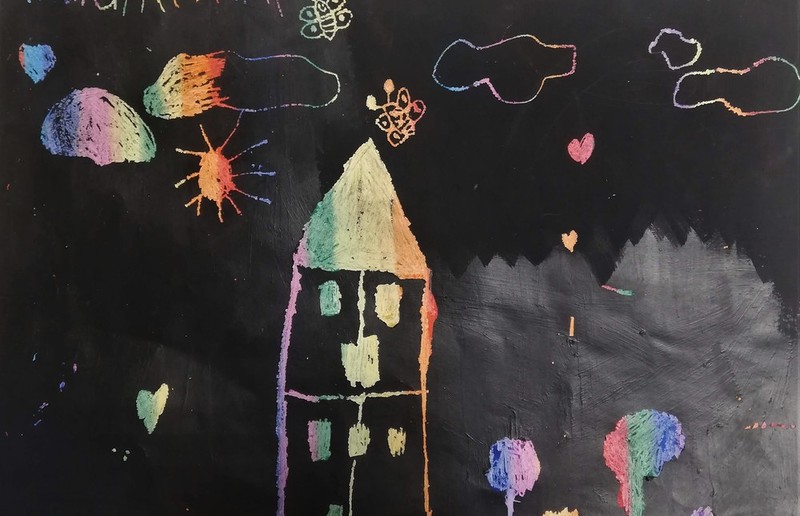 1. Nehmt ein A4 Blatt und bemalt es mit vielen bunten Wachsmalkreiden.