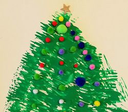 Danach wird das Blatt zum Trocknen gelegt. Daraufhin klebt ihr kleine Pompons auf das Bild. Zum Schluss wird ein Stern auf der Spitze des Baumes gezeichnet.