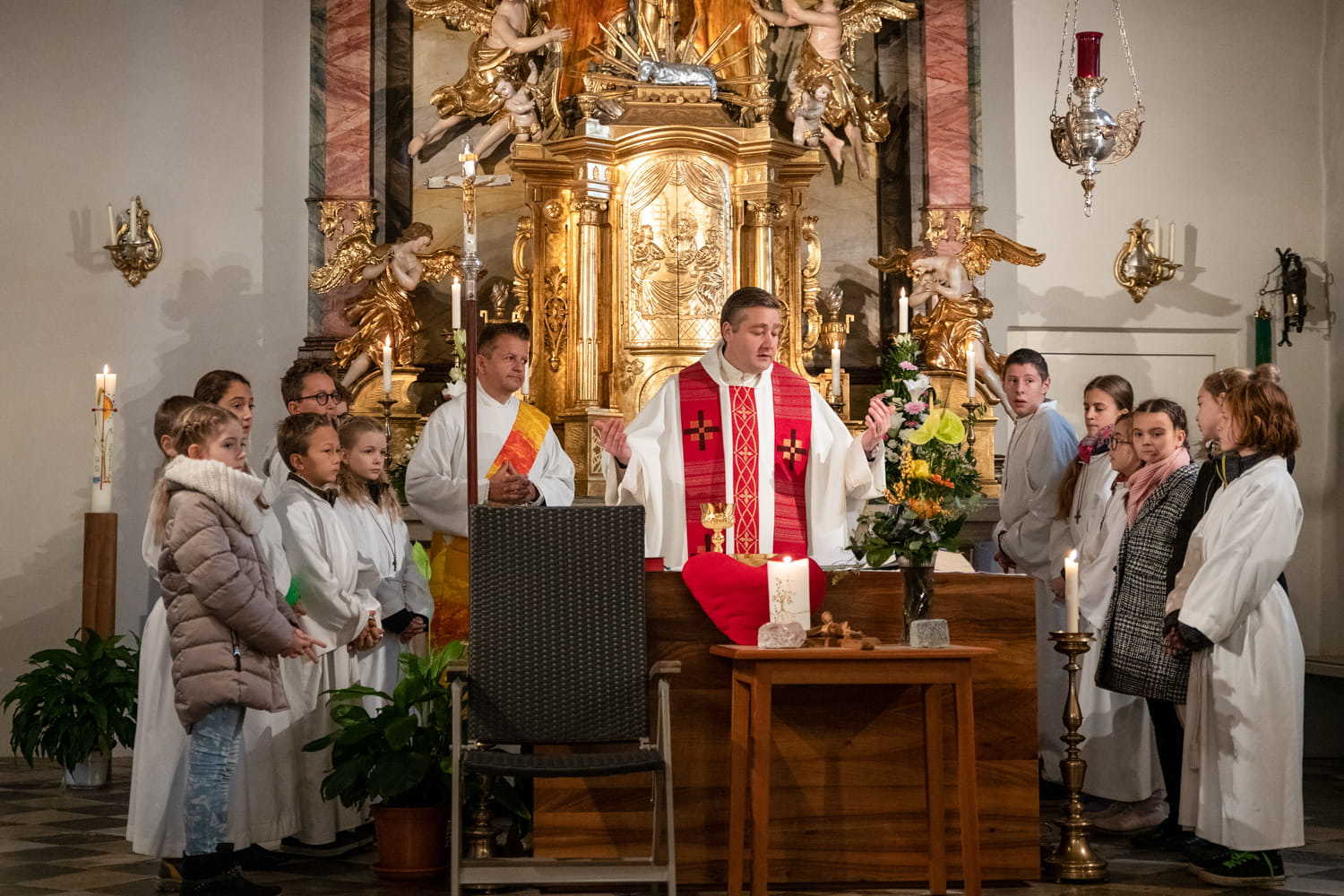 Festlich gestaltet von unserem Pfarrer Claudiu Budãu und Diakon Wolfgang Garber. Sehr schön war die Segnung der Paare.
