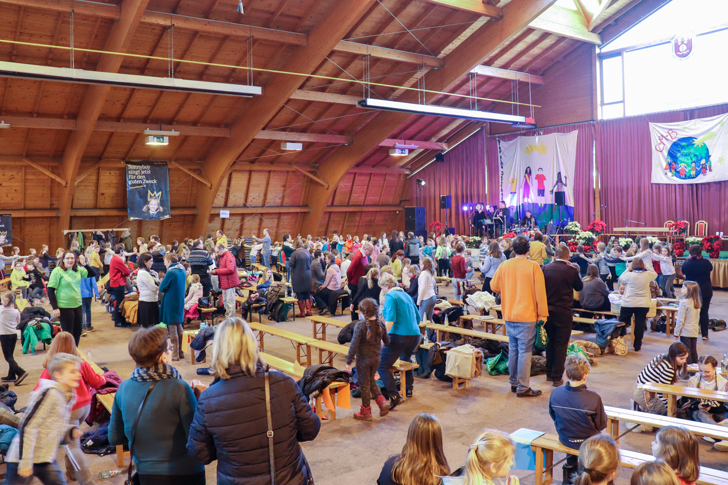 Nach dem traditionellen Würstlessen animierte eine Band die Kinder zum Mitsingen und Mittanzen. Währenddessen stand unser Bischof wieder für Selfies und Gruppenfotos zur Verfügung.