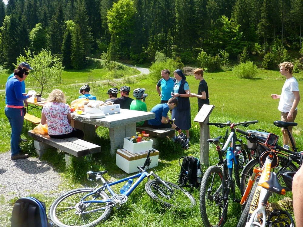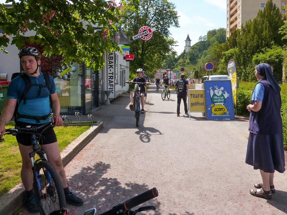 Am 4. Juni starteten wir unsere anstrengende Radtour nach Mariazell. Um 6:30 Uhr ging es los mit einer kleinen Andacht in der Dobler Kirche. Wenige Augenblicke später bekamen wir von Sr. Maria ein kleines Kärtchen, welches uns an die Wallfahrt erinnern sollte. Wir starteten in Dobl und machten uns auf in Richtung Graz. Unsere erste Pause machten wir in Gösting in einem kleinen Park. Nach langer Fahrt, zwei Pausen und einem platten Reifen bei einem der Erwachsenen, kamen wir dann beim Gasthaus Ritschi vorbei, bei dem wir zu Mittag aßen. Etwa 60 km fehlten uns nur noch nach Krieglach, ein bisschen weniger als die Hälfte. Leider stürzte auf unserem Weg Maxi auf den Kopf und war kurz ohnmächtig. Es wurde sofort die Rettung gerufen. Als die Rettung ankam, ging es ihm wieder gut. Sr. Maria fuhr dann mit zum Krankenhaus. Sonst gab es keine schlimmen Stürze. Dann fehlten uns nicht mehr viele Kilometer und am Ende kamen wir in einen kleinen Regen. Wir bekamen beim Gasthof Stocker ein gutes Abendessen und übernachteten dort auch. Doch wir mussten am nächsten Tag schon sehr früh aufstehen. Nach dem Frühstück ging es auch schon weiter Richtung Mariazell. Am Samstag gab es starke Steigungen. Nach ein paar Pausen und einigen Höhenmetern kamen wir um ca. 13 Uhr in Mariazell an. Dort haben wir zu Mittag gegessen und uns dann Mariazell angeschaut. Um 17 Uhr feierten wir einen Gottesdienst mit Abt Philipp vom Stift Rein und haben uns anschließend auf den Weg nach Hause gemacht. Danke für den schönen Ausflug!