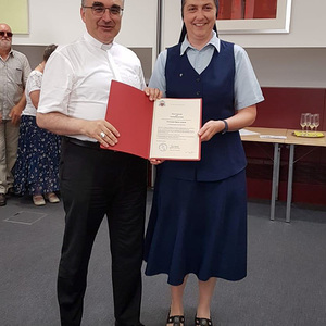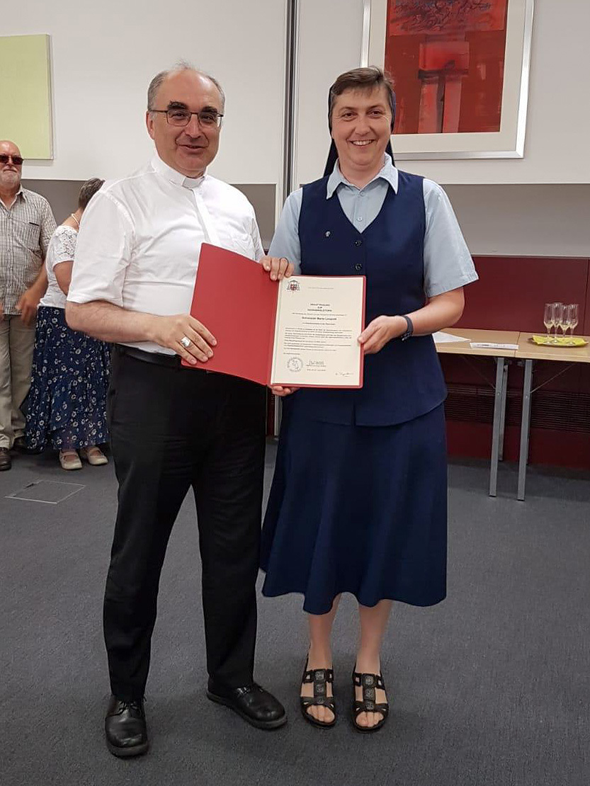 Sr. Maria Leopold hat diesen Ausbildungskurs mit sechs Modulen gemacht und ein Praktikum absolviert. Sie wurde am Freitag, den 14. Juni vom Bischof für die Pfarre gesendet und am Sonntag, den 16. Juni von Pfarrer Karner der Pfarrbevölkerung vorgestellt. Die Verantwortlichen der Diözese wünschen, dass die Begräbnisleiter ein liturgisches Kleid – eine weiße Albe – tragen.
