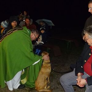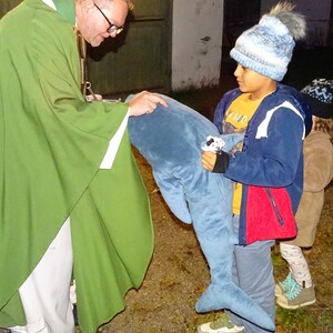 Am Samstag, 4. Oktober lud Pfarrer Ruthofer zur Tiersegnung in den Klostergarten. Zur Vorabendmesse kamen kleine und große Tierfreunde. Pfarrer Ruthofer segnete Hasen, Bären, Hunde, eine Maus und einen Riesen-Hai mit Weihwasser und vom Schöpfer des Himmels und der Erde wurden auch alle Besucher mit zarten Regentropfen beglückt!
