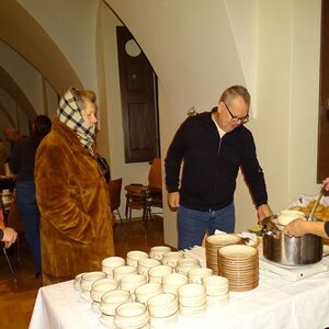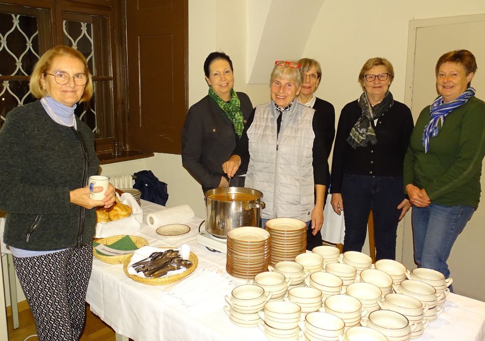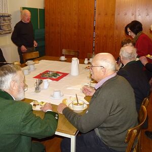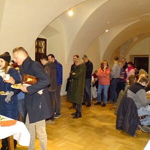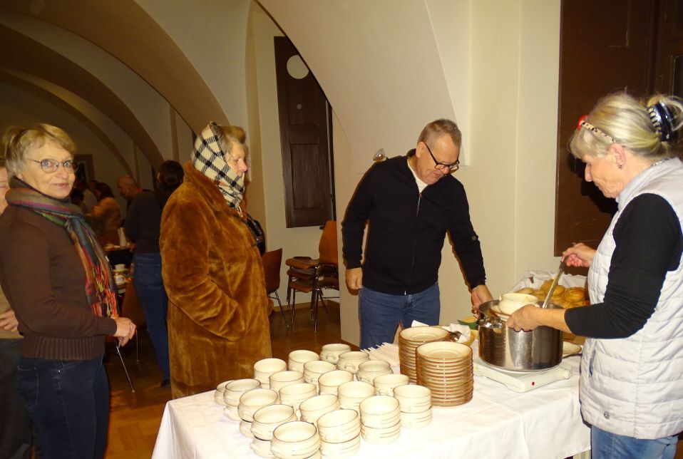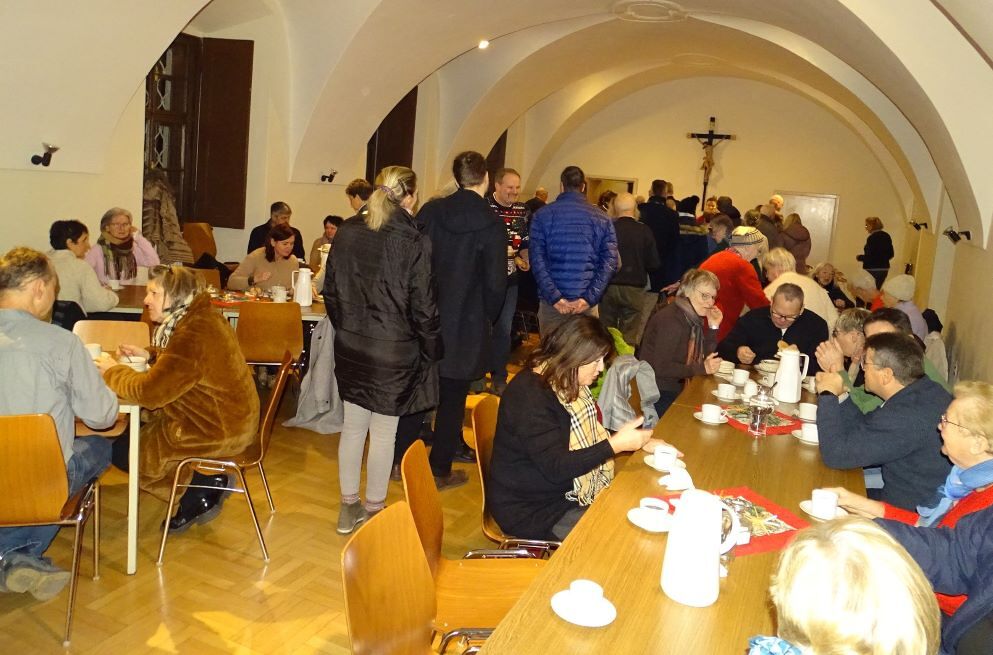 Wohl auch deswegen blieben so viele Besucher der Rorate anschließend zum Pfarr-Kaffee und füllten den Saal und auch noch den Frauen-Raum bis auf den letzten Platz!