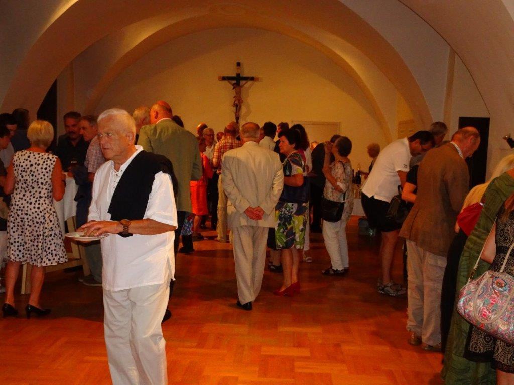 Die feierliche Begrüßung erfolgte durch Vorsitzenden des PGRs, Franz Rappold, einleitenden Worte sprach dann die Organisatorin der sehr gelungenen Collagen, Angelika Hütter, und Pater Simon dankte allen, die zur heutigen Vernissage gekommen sind, darunter u.a. den Em.-Diözesanbischof Dr. Egon Kapellari, den Armen-Pfarrer Wolfgang Pucher, die gesamte heimische Politprominenz sowie die anwesenden Künstler Peter Angerer, Gerald Brettschuh, Ruth Lackner und Kurt Zisler.
