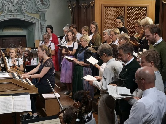 Mit dem Schulanfang nahm auch der Chor der Pfarre Frohnleiten wieder seine wöchentlichen Proben auf und bereitete für die festliche Messe zum Erntedankfest die „Missa brevis Sancti Joannis de Deo“ von Joseph Haydn vor. Den bekannteren Beinamen „Kleine Orgelsolo-Messe“ trägt das Werk, weil das „Benedictus“ zusätzlich zu den Streichern ein virtuoses Orgelsolo zur Begleitung der Sopransolistin enthält.
