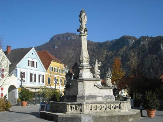 Das wohl bekannteste Zeichen unseres Glaubens in der Pfarre ist die Mariensäule am Frohnleitner Hauptplatz. Mit dieser barocken Säule haben die Frohnleitner Bürger vermutlich auf Anregung der Serviten 1732 der Heiligen Maria ihre Ehrerbietung erwiesen. Das denkmalgeschützte Objekt, häufig auch „Frauensäule“ genannt, wird gekrönt von der Darstellung der Unbefleckten Empfängnis Mariens (mit den Attributen Weltkugel, Schlange und Sternenkranz). Maria, die Patronin der katholischen Kirche und der ganzen Christenheit, gilt als Vorbild des Glaubens sowie als Mittlerin und Fürbitterin.