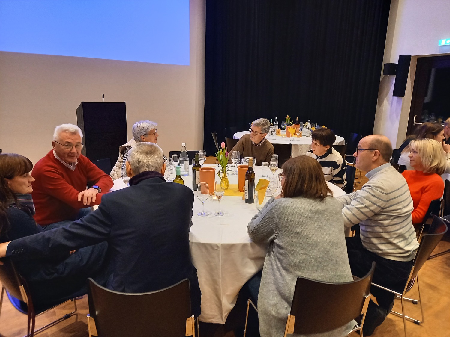 Mit einem Gläschen Sekt wurde auf das Miteinander angestoßen und bei Wein und gutem Essen wurden in harmonischer Atmosphäre anregende Gespräche geführt.
