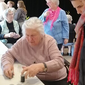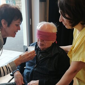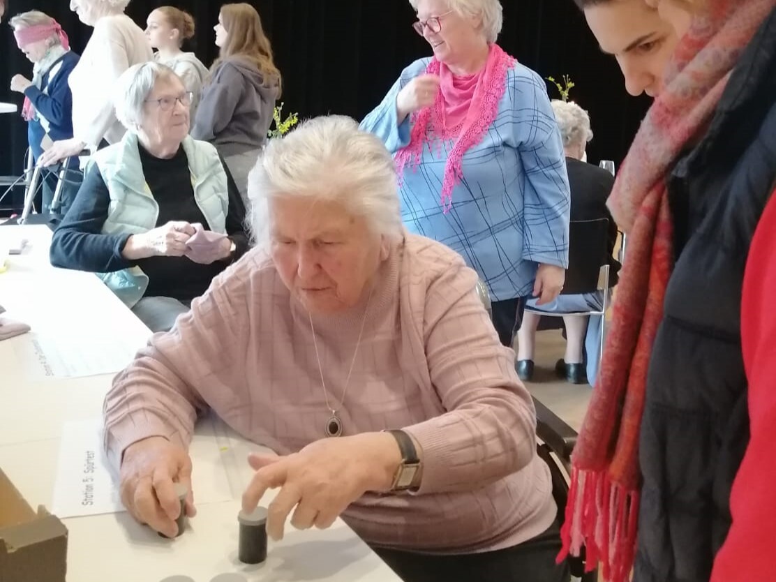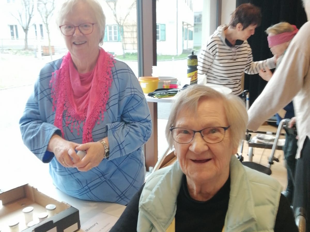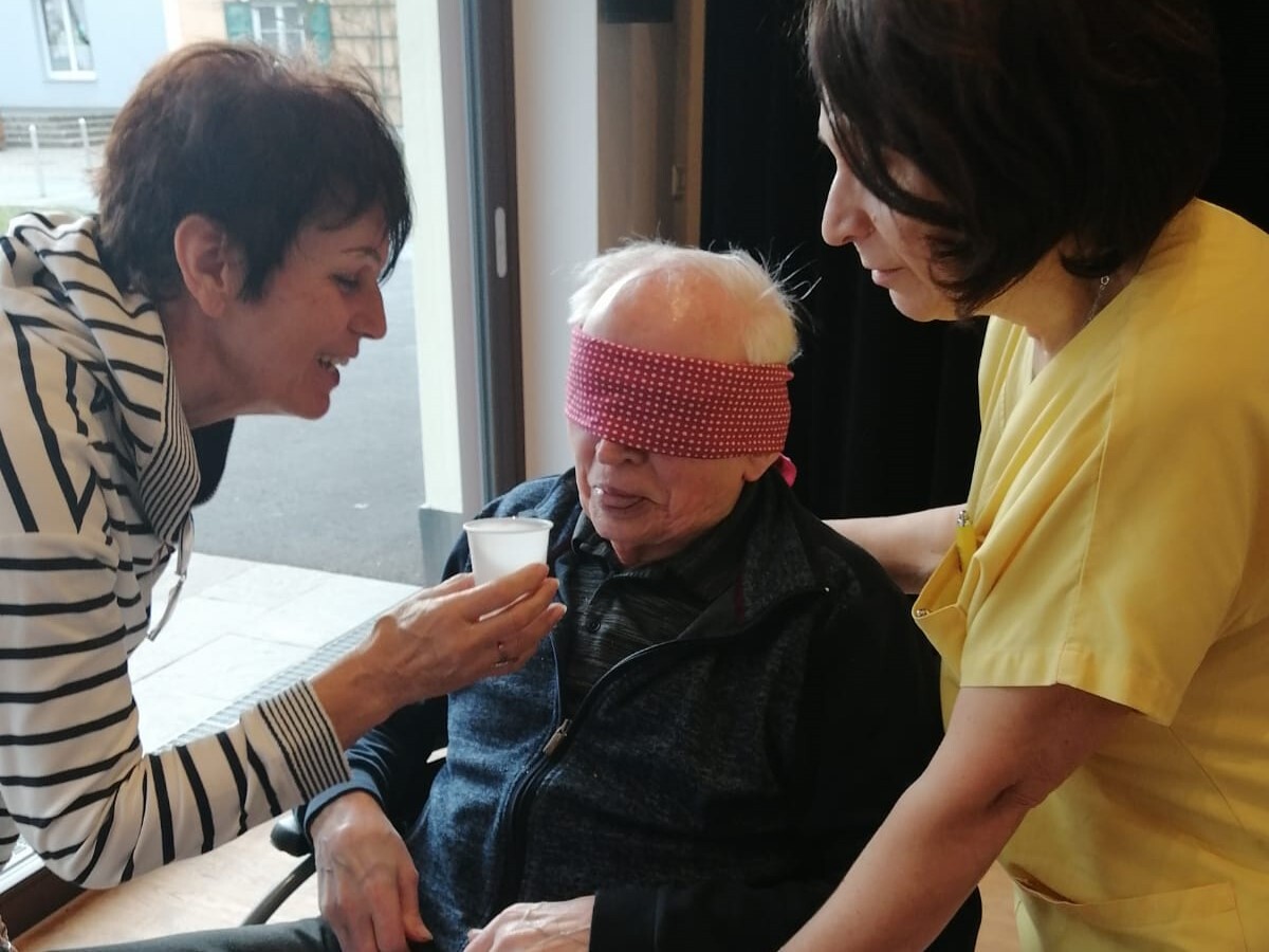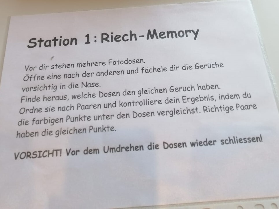 Eine gelungene Idee war der Weg der Sinne, der von Frau Michaela Moser vorbereitet wurde. Mit Begeisterung waren alle Senioren dabei und versuchten sich im bewussten Wahrnehmen ihrer Sinne. Ob riechen, schmecken oder das Gedächtnis ausprobieren, es machte den Teilnehmenden großen Spaß.