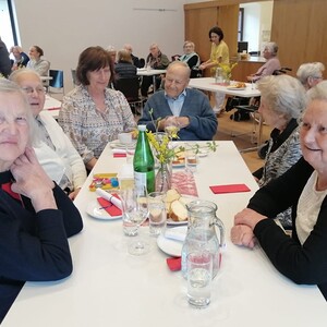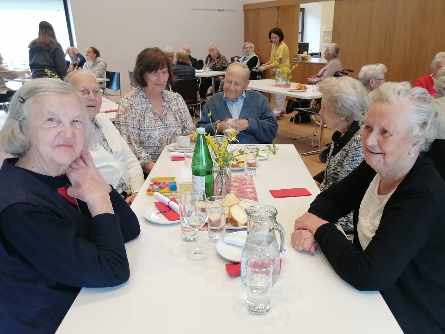 Nach dem besinnlichen Einstieg, der alle sehr berührte, wurde Kaffee und Weißbrot serviert. In der Runde der Besucher befanden sich zwei Geburtstagskinder denen herzlich gratuliert wurde. Mit einem Gläschen Wein wurde auf das Wohl von Herrn Resch und Frau Elsnig angestoßen.