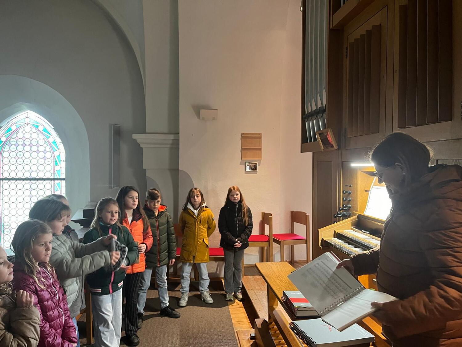 So durften die Kinder bewusst den Klängen der Orgel lauschen und selbst ausprobieren, wie es sich anfühlt, auf dem Instrument zu spielen. Was in der Sonntagsmesse ansonsten von den Kindern nur hörbar ist, durfte direkt am Chorraum der Kirche entdeckt werden. Danke für diese Erfahrung und vielleicht wird ja dadurch die Neugierde geweckt, dieses Instrument spielen zu lernen.