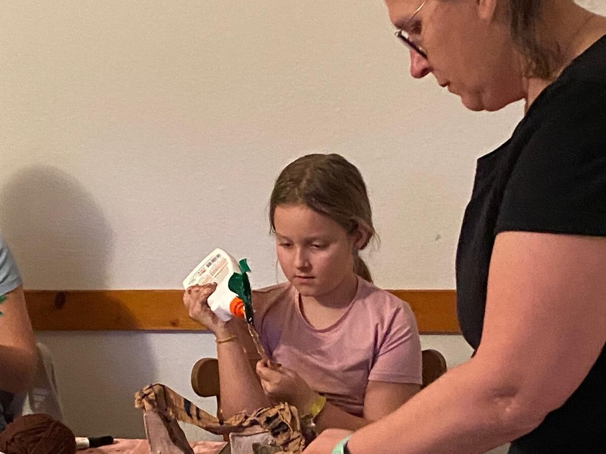 Um an einem Nachmittag schöne Krippenszenen entstehen zu lassen, war viel Vorarbeit nötig, die unser Krippenbaumeister mit Freude leis­tete. Die Kinder durften die vor­ge­fer­tig­ten Roh­linge eifrig be­pin­seln,  Palmen formen und die Krippen mit be­son­der­en Details be­kle­ben, und tauch­ten so einmal ganz anders in die Weih­nachts­zeit ein.