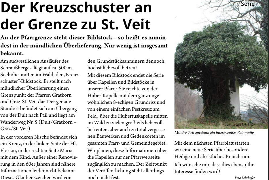Ein Artikel zu diesem Bildstock von Vera Lehrhofer erschien in der Ausgabe 2015-4