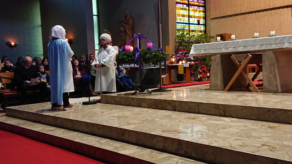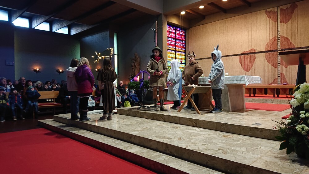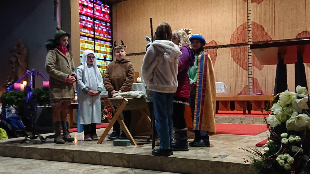 Tina Fegerl hat mit den Kindern in vielen Proben wieder ein tolles Krippenspiel einstudiert und eine besinnliche Andacht vorbereitet. Musikalisch begleitet wurde es von eine Bläsergruppe von klein bis groß.