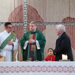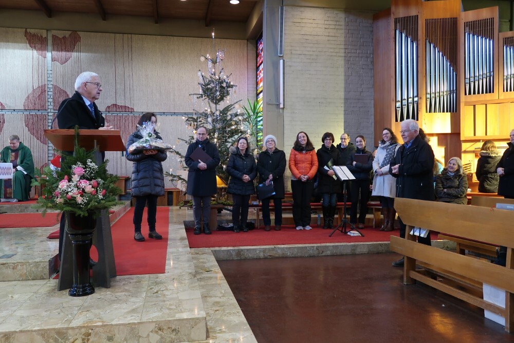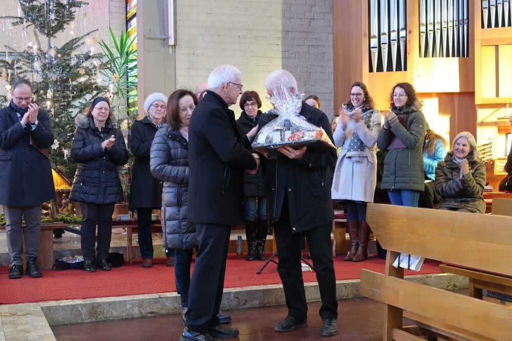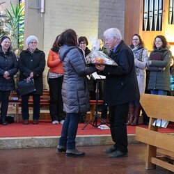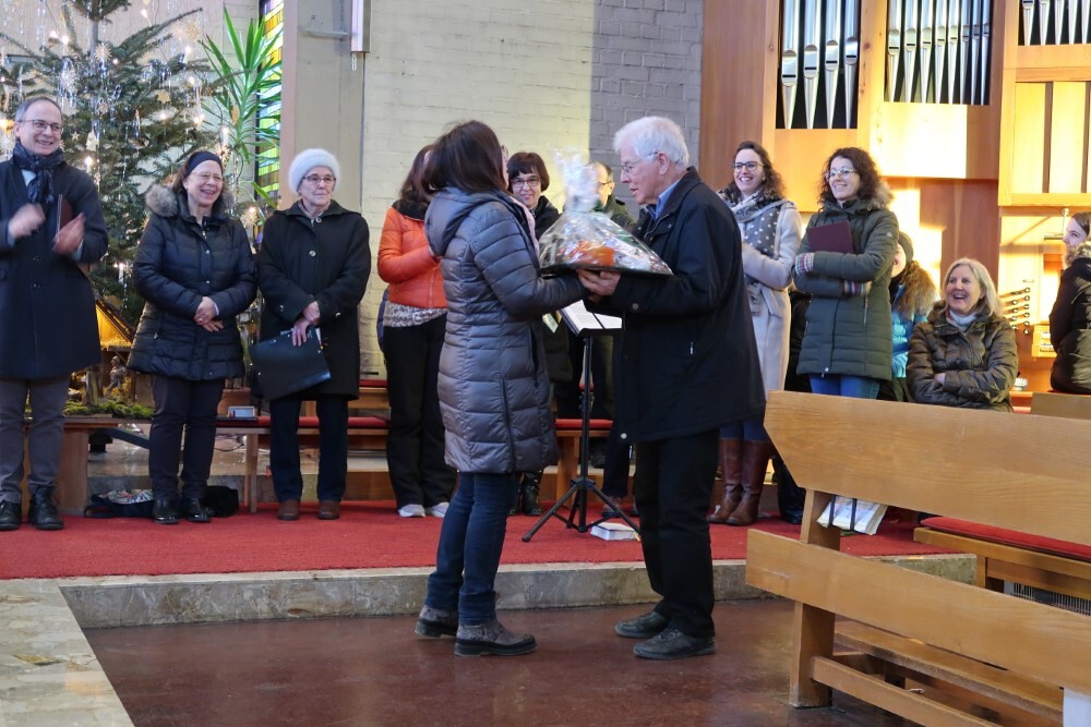 Von Seiten der Pfarre übergaben, nach einer (nicht vollständigen) Auflistung seiner Tätigkeiten in den letzten 50 Jahren, der geschäftsführende Vorsitzende Gotthard Rainer und seine Stellvertreterin Agnes Allesch-Plaschzug einen Gutschein für einen Ausflug mit der Pfarrgemeinde. Außerdem dankte ihm Bürgermeister Stefan Helmreich für seinen Einsatz, speziell auch für die Partnerschaft Lieboch - Ilok.